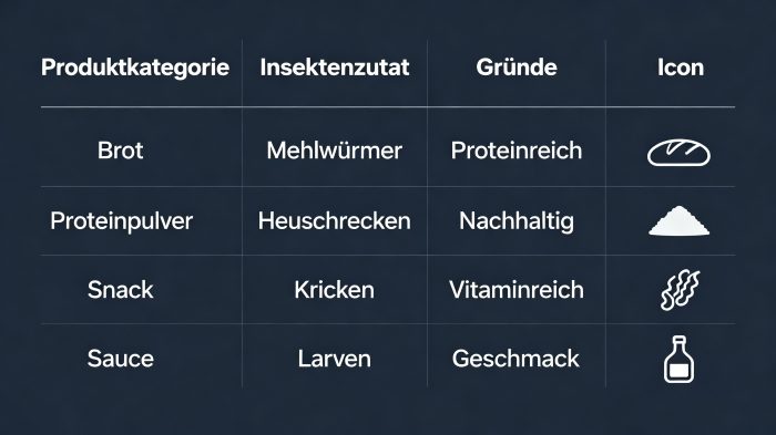 Typische Insekten‑Zutaten (Wortlaut-Beispiele)