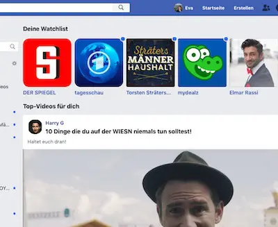 Facebook Watch ist der neue Video-News-Steam von Facebook. Auf dem Desktop finden wir unser kleines Video-Unterhaltungsprogramm links unter dem Messenger – auf dem Smartphone direkt im Kopfmenü – zwischen den Freundschaftsanfragen und dem eigenen Profil. Am Desktop können wir die Video-Watchlist sehr einfach bearbeiten: Mit einem Klick auf das Zahnrad entfernen wir die Quellen (Seiten, Gruppen, Medien) die uns nerven – und fügen über das Suchfeld vielleicht auch weitere Quellen hinzu. Nun erfahren wir, dass immer mehr Verlagshäuser gezielt mit Facebook Watch kooperieren. Nach ProSiebenSat1 und RTLII kommen nun noch Springer, Burda und G+J hinzu. Sie alle produzieren exklusive Videos für Facebook Watch und erhalten dafür Geld.