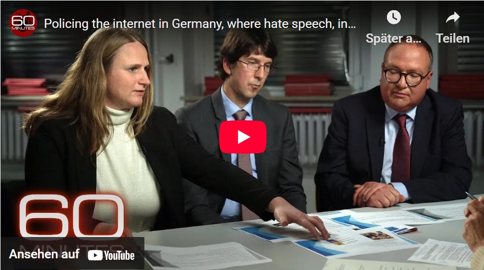 Februar 2025: Deutschland wird international bestaunt aufgrund einer Reportage, in der ein Team der CBS-Sendung „60 Minutes“ Razzien der deutschen Polizei begleitet, bei denen aufgrund von Hassreden im Internet Hausdurchsuchungen stattfinden