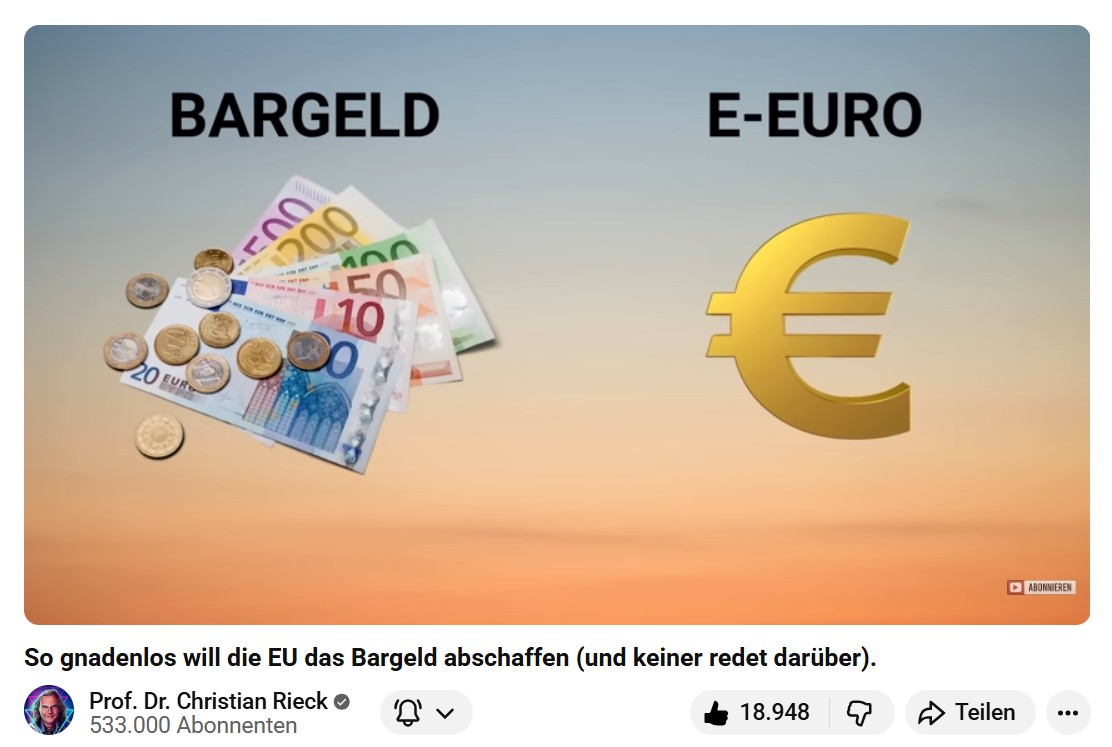 Bargeld verliert den Status als gesetzliches Zahlungsmittel, wenn Einzelhändler und Dienstleister nicht mehr gezwungen sind, Bargeld als Zahlungsmittel annehmen zu müssen. Online ist es ja sowieso schon unmöglich, mit Bargeld zu bezahlen. Die EU-Kommission will, dass zwar der Digitale Euro als gesetzliches Zahlungsmittel verankert und überall angenommen werden muss, Bargeld jedoch nicht. (Ausführliches Video unter dem Beitrag)